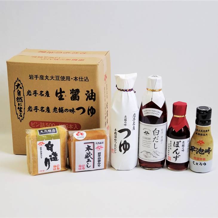 大人気の「老舗の味つゆ」や、新商品の「岩手・老舗の白だし」の他、上品な出汁が香るぽんず等、職人が腕によりをかけて作った商品の詰め合わせです。