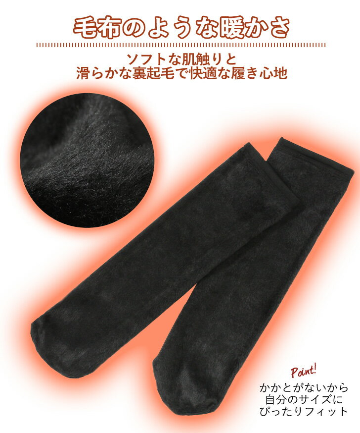 商品名:裏シャギー あったか ハイソックス●ソフトな肌触りと滑らかな裏起毛で快適な履き心地 程よい厚みがあるのでまるで毛布のように暖かい かかとがないから自分のサイズにぴったりフィット ■生産:中国製 素材 ポリエステル、ポリウレタン カラー ブラック(標準的な黒) サイズ(cm) 全長 片足重さ(g) 22〜25 39 44 上記サイズ表はスタッフが採寸し、製品の実寸を掲載しております。